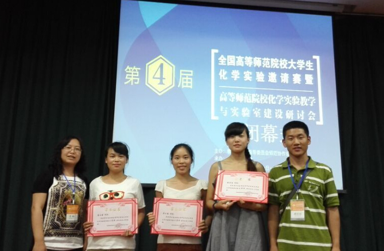 7月19日-22日,第四届全国高等师范院校大学生化学实验邀请赛在山西临汾举行,该竞赛由教育部化学教学指导委员会主办,山西师范大学承办,来自全国43所高等师范院校的260余名代表参会,其中学生125名参赛。我校化学与材料科学学院李梅、孙荣国老师带领2012级学生吴小英、张思佳、董玉娟等3名同学参加了此次邀请赛。学生发挥出色,获得两个二等奖、一个三等奖的优异成绩。