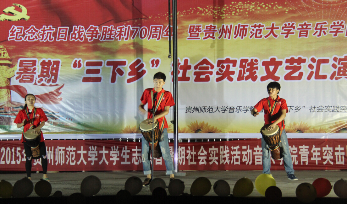 7月15日——7月26日,在音乐学院党委的坚强领导下,在院团委的精心组织下,音乐学院2015年暑期“三下乡”社会实践活动在安顺市黄果树中学如期开展。在学院团委书记刘春健老师的带领下,22名学院选拔的服务队成员紧紧围绕践行“八字真经”,投身“四个全面”的主题,以黄果树中学为驻扎点,辐射镇宁县及黄果树景区管理委员会所辖布依族村寨,积极开展了以“文艺支教、民族传承、爱国教育、关爱女孩”为主线的社会实践活动。