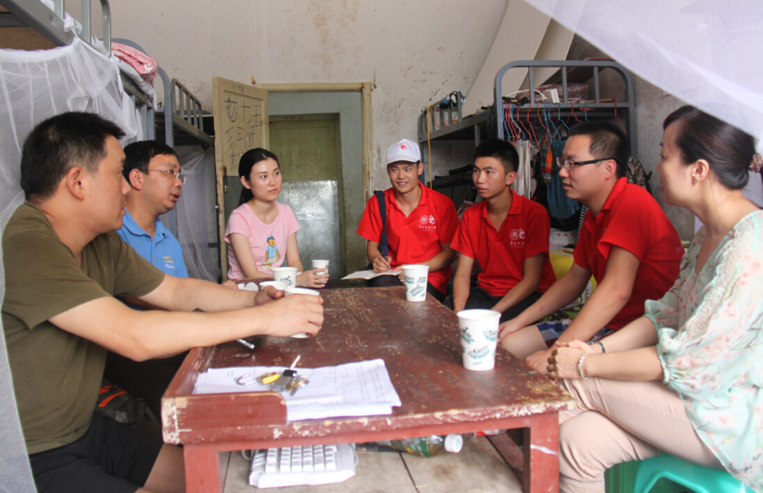 7月20日,音乐学院党委书记罗税、党委副书记刘海、党委组织员潘瑜和辅导员李华一行4人前往学院暑期社会实践服务队驻地黄果树中学,看望慰问服务队员们。他们仔细查看了服务队员的住宿环境,走进课堂认真聆听队员上课,参与正在开展的“关爱女孩”调查问卷活动。在与全体队员座谈会上,罗税书记赞扬了队员们良好的精神风貌和认真负责的工作态度,鼓励大家好好利用这次难得的机会,真正做到“经风雨、受教育、长才干、做贡献”,为今后的学习生活奠定良好的基础。座谈会气氛热烈,队员们纷纷表示,领导老师们的到来如同注入了一针强心剂,他们一定不辜负学院期望,用实际行动圆满完成此次活动。