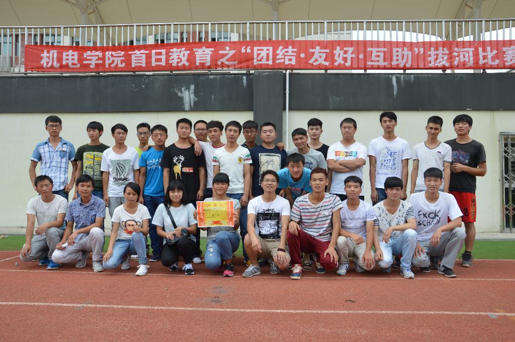 8月23日下午,学院在花溪校区二号田径场举行了以“团结、友好、互助”为主题的拔河比赛。学院团委副书记许珊、2013级机械班辅导员朱成龙、2014级机械班辅导员廖文群出席比赛现场。