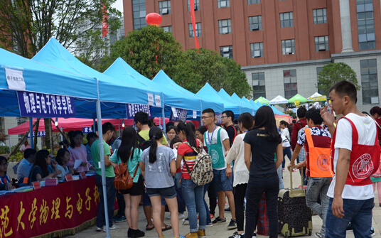 9月6日,开学之际。物理与电子科学学院迎来一批风华正茂的莘莘学子。他们满怀着对大学生活的憧憬,加入物理与电子科学学院这个大家庭。此次迎新工作受到校领导及院领导的高度重视,下午校党委书记韩卉、副校长刘肇军、徐晓光,在校办、团委、学工部、保卫处等部门领导的陪同下,亲临学院迎新现场,慰问工作人员和志愿者,与新生、家长亲切交流。同时学院党委书记宇燕、院长陈世国、院党委副书记李应发全天坚守迎新工作点,指导迎新工作的有序开展。
