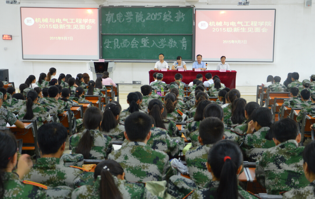 9月7日上午,机械与电气工程学院2015级新生见面会在机电楼8501阶梯教室举行。学院院长胡圣波,党委副书记黄平惠,副院长郑继明、张太华,学院办公室主任崔译霖,团委副书记许珊,机械系主任徐卫平、副主任伍权,电气系主任吴舰,实训中心主任游明琳、副主任郑宇,部分教师代表及各年级辅导员出席会议。2015级全体新生共240人参加会议。会议由许珊主持。