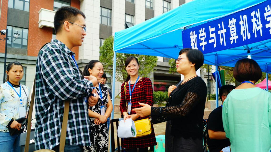 秋风送爽,丹桂飘香。9月6日上午7时,数学与计算机科学学院2015年迎新工作在校行政楼前有序展开。期间,院党委书记戴雪梅,院党委组织委员、学生党总支书记杜梅英莅临现场指导迎新工作。学生党总支委员、辅导员带领学院团学青学生干部及学生党员、入党积极分子组成迎新工作组,井然有序帮助新同学办理入学手续。