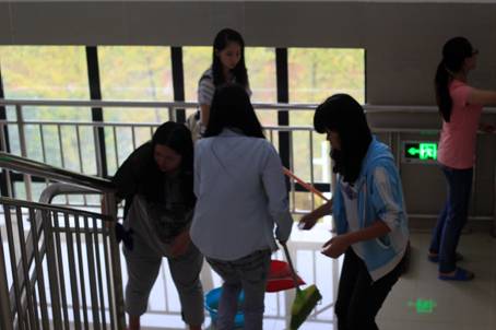 应学校开展“学生日常思想政治教育主题活动”的通知精神,继上学期开展书香教室、绿色寝室建设活动以来,9月12日下午,国际旅游文化学院在学院楼组织开展了主题为“学院是我家,亮丽靠大家”的劳动教育实践活动。约100名同学按组分别对办公室、楼道、楼面和厕所等区域进行了全面打扫。劳动过程中,同学们不怕脏不怕累,积极肯干,认真细致,充满了劳动的快乐。正如2013级同学潘婷说的:“看到亲手将学院变得亮丽起来,真是觉得又充实又快乐!”