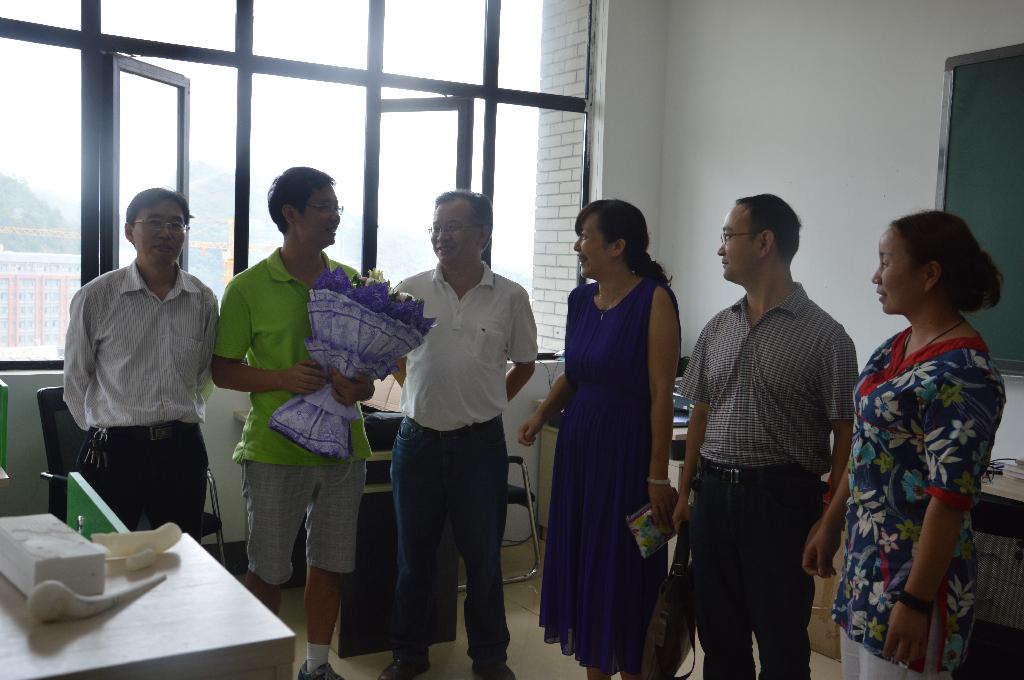 走访问候送祝福。9月10日清早,学院办公室通过QQ群、短信等方式为全体教师送上了节日的祝福。桃李满园源于园丁的辛勤浇灌,节日当天,学院党政领导和工会代表走访慰问了一线教师骨干,为他们送上了鲜花,带去学院真诚的祝福,对他们为学院做出的贡献表示诚挚的感谢。