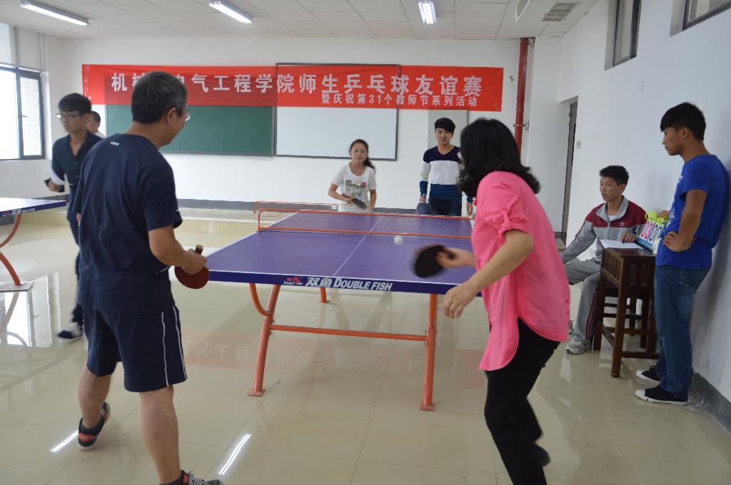 兵乓球赛增情感。9月16日中午,学院举行了师生乒乓球友谊赛,让平日里忙于教学和学习的师生走出教室,老师们多了几分活力,学生们少了几分拘谨,一起享受运动的快乐。教师队分为机械队、电气队、行政队、实训队。学生分为学生1队、学生2队。八尺绿台闪弧影,两阵方圆展神兵。比赛中,选手们一拍拍势大力沉的扣杀,一次次迅如疾风的猛攻赢得观众阵阵喝彩。最终,行政队以4:1的成绩战胜了学生1队,获得冠军。