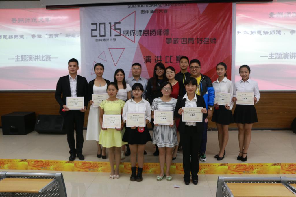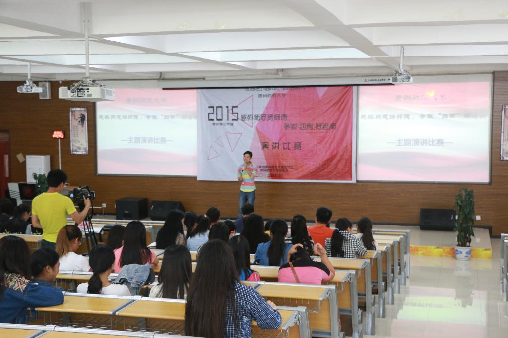 为庆祝第三十一个教师节,进一步倡导尊师重教的良好风尚,激励全校广大团员青年向教育战线优秀教师学习。我校于9月18日下午在花溪校区公共教学楼6201教室(道德讲堂)开展了“感怀师恩扬师德,争做‘四有’好老师”主题演讲比赛。