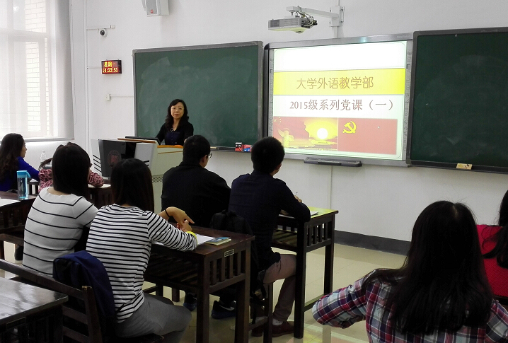 2015年9月21日下午,大学外语教学部全体研究生开展了系列党课之第一讲,由大外部党支部书记邓晓蒨主讲。邓书记简要的介绍了“双学小组活动”,同时希望大家积极开展“双学”活动。