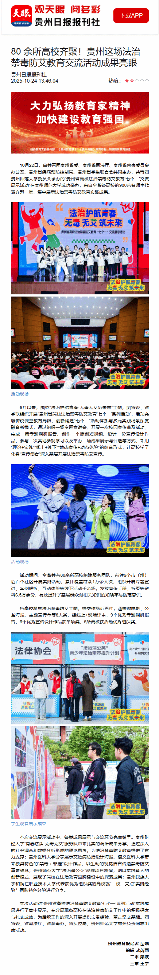 【天眼新闻】80 余所高校齐聚!贵州这场法治禁毒防艾教育交流活动成果亮眼