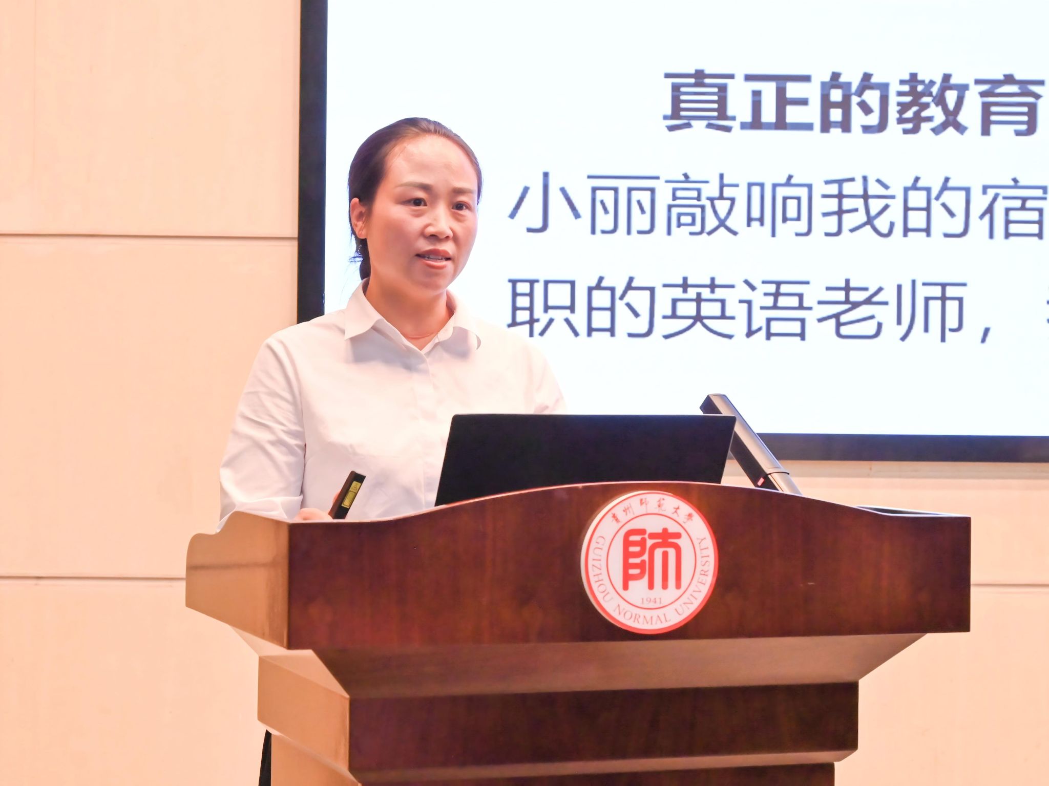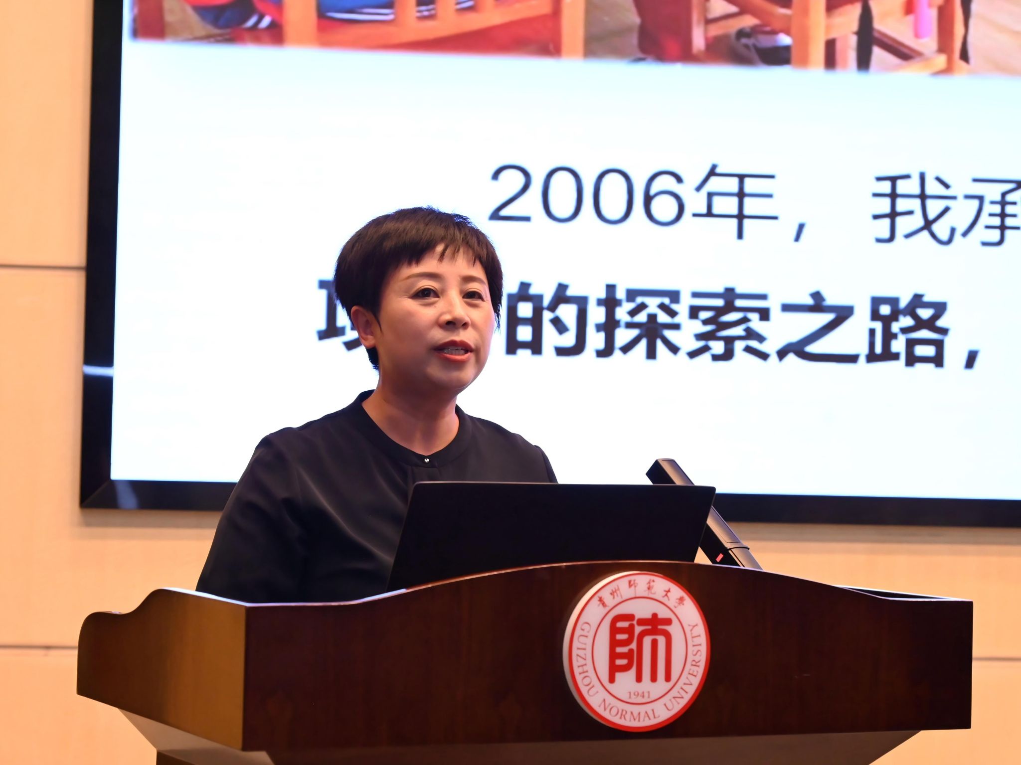 全国师德楷模、全国优秀教师,贵州师范大学文学院对外汉语专业2005级校友、黔西南州普安县西城区龙溪石砚小学教师陈美荣分享了自己扎根乡村教育一线的动人故事。十六年来,她走访了300余名学生家庭,用智慧的爱与陪伴呵护孩子们健康成长。