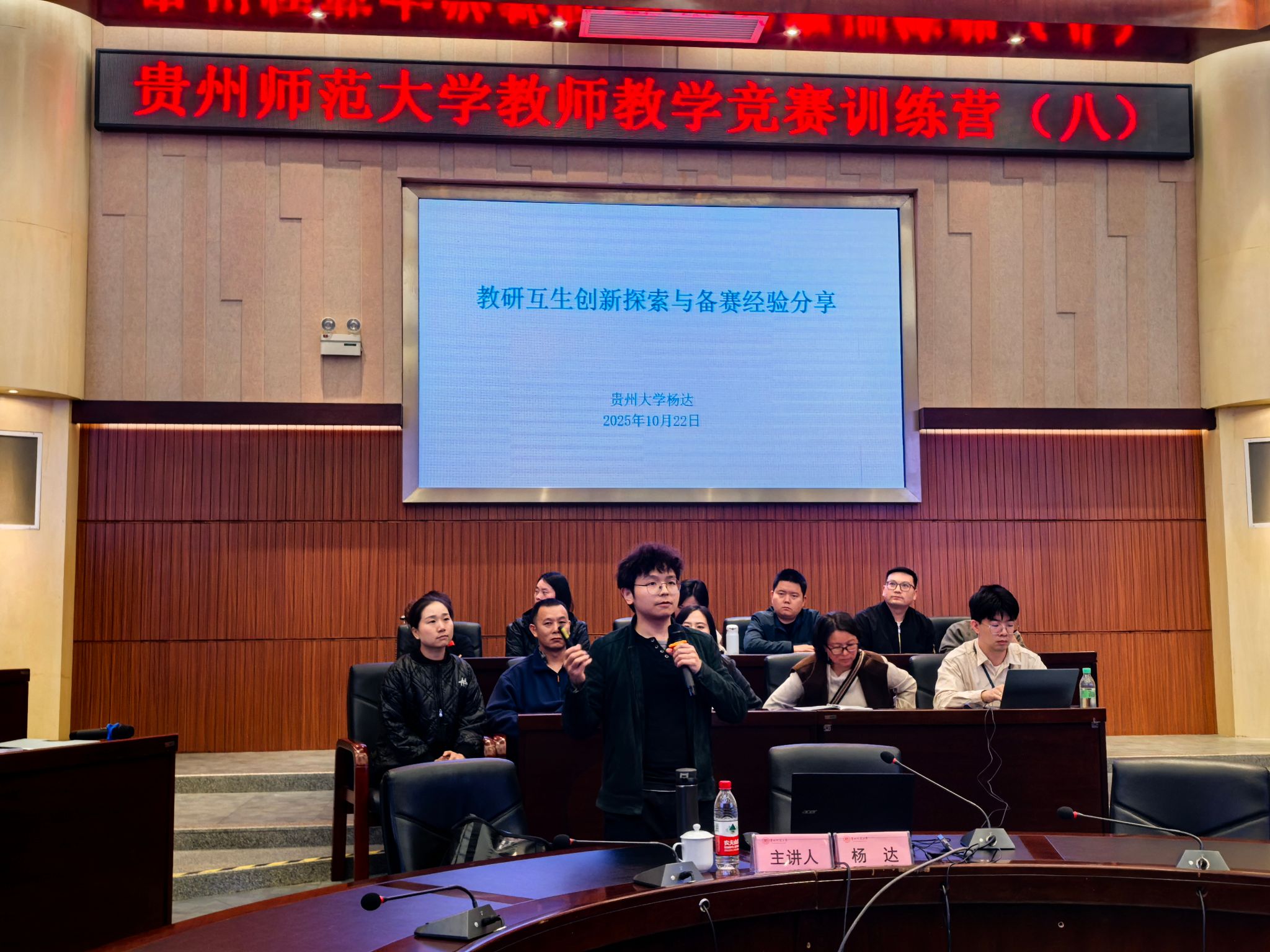 为进一步推进首届“香樟教学节”取得实效,促进教师教研能力提升,10月22日下午,学校在东区会议中心一楼圆厅举办教师教学竞赛训练营第八场培训。活动邀请到国家级青年人才、第五届全国高校教师教学创新大赛一等奖获得者贵州大学杨达教授主讲,我校音乐学院副教授袁敏主持,2025年教师教学竞赛参赛教师等70余人参加。