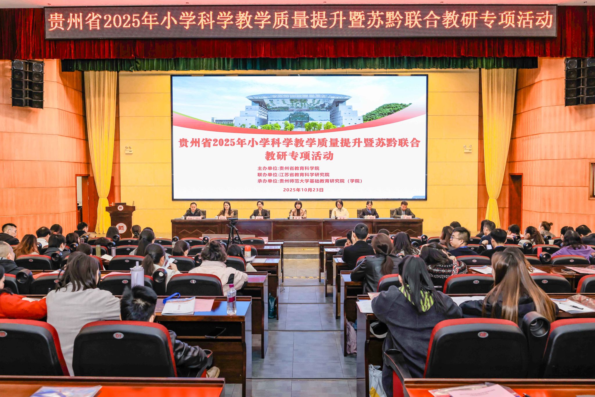 10月23日-24日,贵州省2025年小学科学教学质量提升暨苏黔联合教研专项活动在贵州师范大学举行。贵州师范大学副校长刘瑾、贵州省教育科学院副院长黄玲、江苏省宿迁市中小学教学研究室科学教研员李金梅、南京师范大学附属中学宿迁分校高级教师秦苍风,贵阳市实验小学校长、正高级教师黄金清,以及贵州师范大学基础教育研究院副院长颜丹丹、王雅克等出席活动。活动开幕式由贵州省教育科学院小学科学教研员杨秀柱主持。