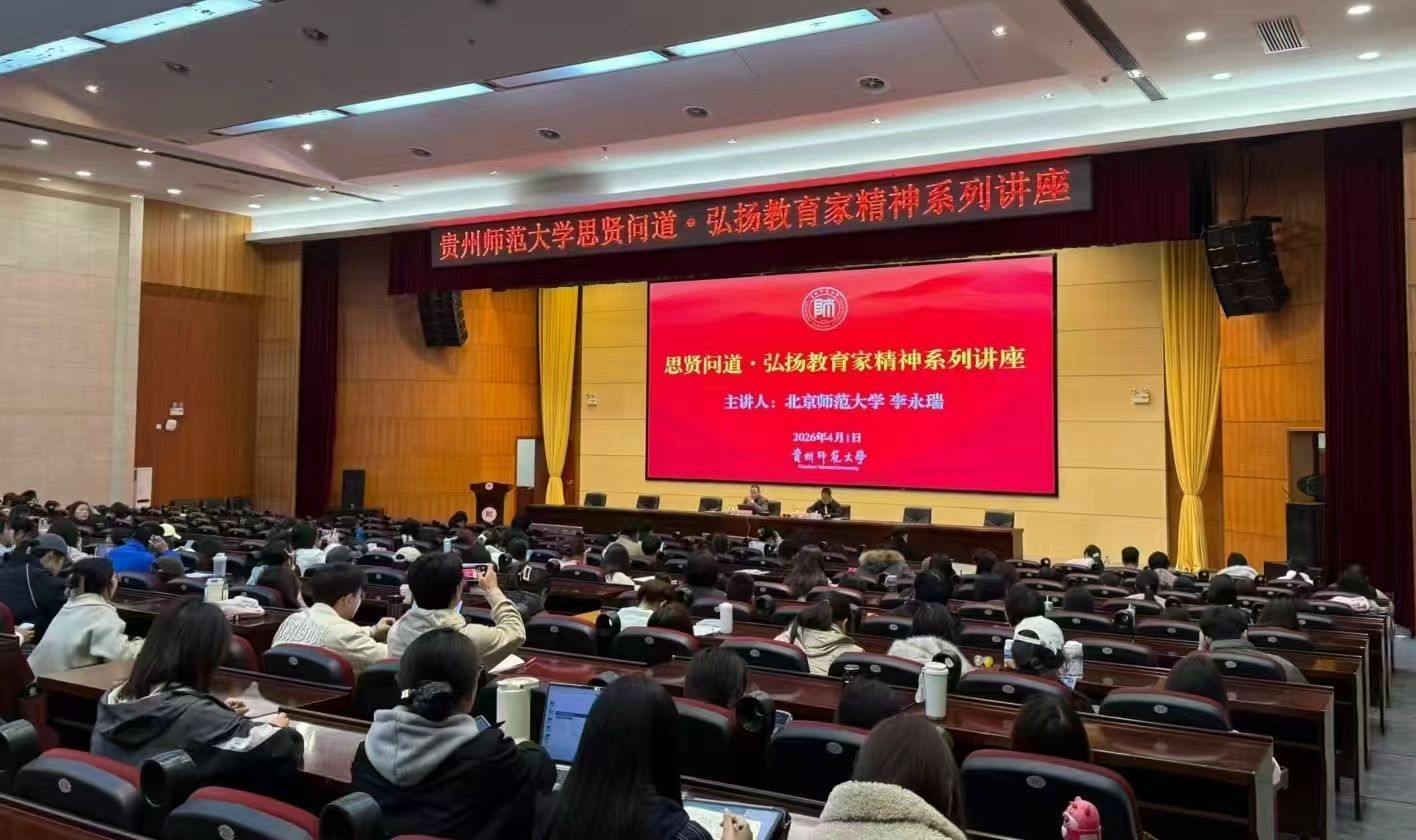 4月1日上午,贵州师范大学思贤问道·弘扬教育家精神系列讲座在东区会议中心一楼学术报告厅举行。学校91届优秀校友、北京师范大学李永瑞教授应邀作题为“大爱无声、立德树人:从教书匠向教育家的成功转型”的专题讲座。全校300余名教师及师范生代表到场聆听。