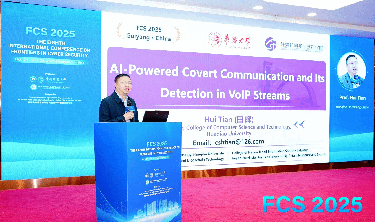 10月25日,第八届网络安全前沿国际会议(FCS 2025)在贵阳开幕,来自清华大学、中国科学院大学、中国科学技术大学、四川大学、华侨大学、西藏大学及我校百余位专家学者、青年学子共同探讨网络空间安全领域的前沿议题。本次会议由贵州师范大学、贵州省智能装备实验室联合主办,我校大数据与计算机科学学院承办,贵州省高等学校信息安全技术特色重点实验室协办。我校副校长伍权出席开幕式。