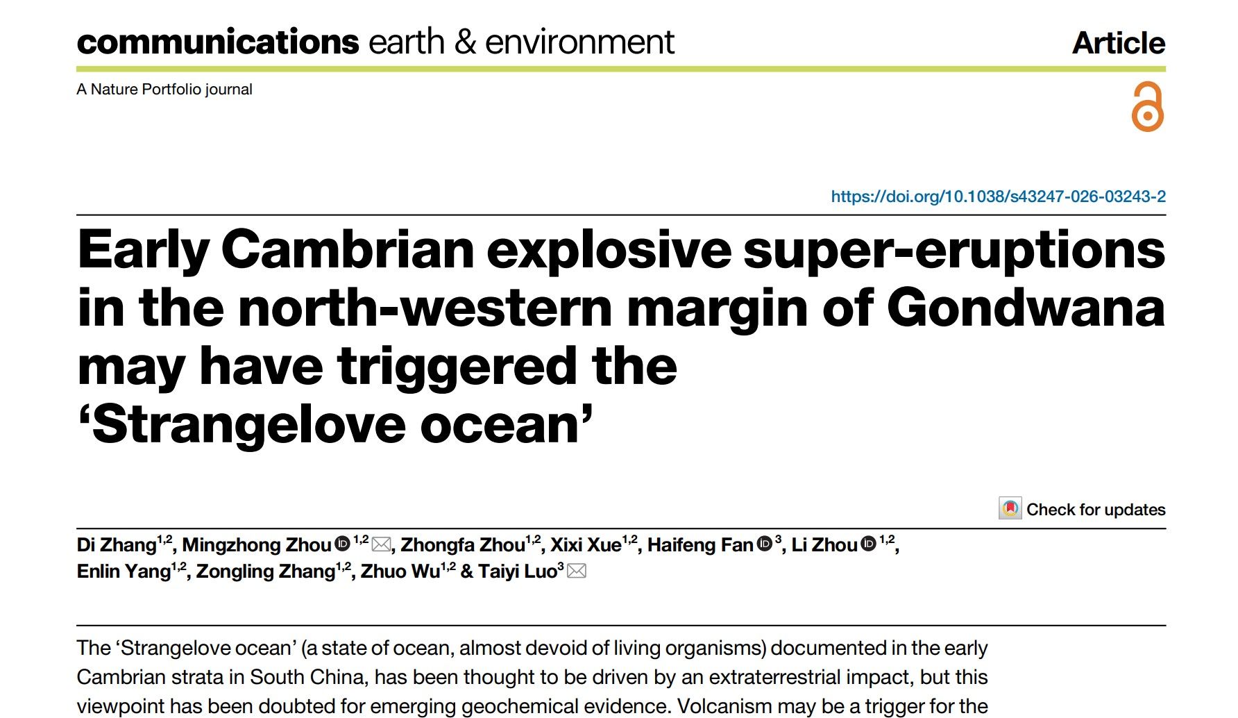 近日,我校地理与环境科学学院周明忠教授团队在期刊《Communications Earth & Environment》发表题为“Early Cambrian explosive super-eruptions in the north-western margin of Gondwana may have triggered the ‘Strangelove ocean’”的研究论文。