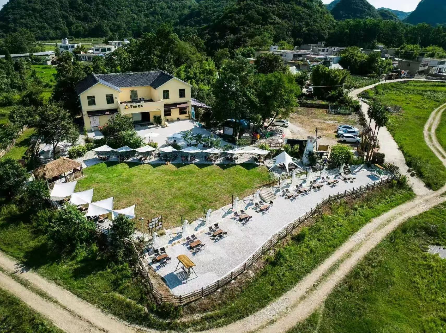 航拍视角下的松林村宠物露营基地