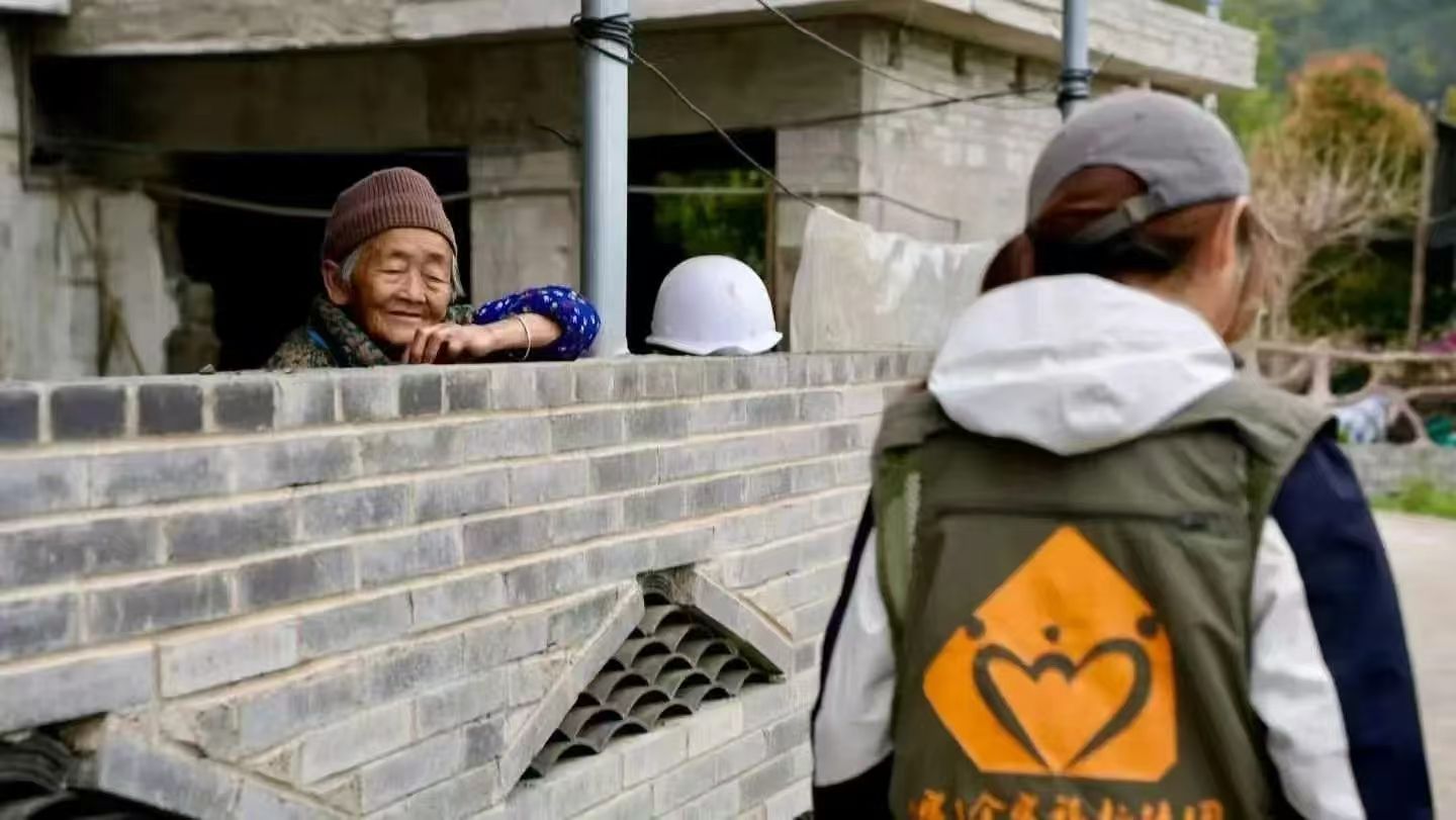 松林村老人望向拍摄团队员
