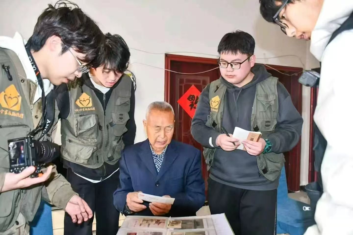 冉太祥老人向队员们分享关于照片的故事