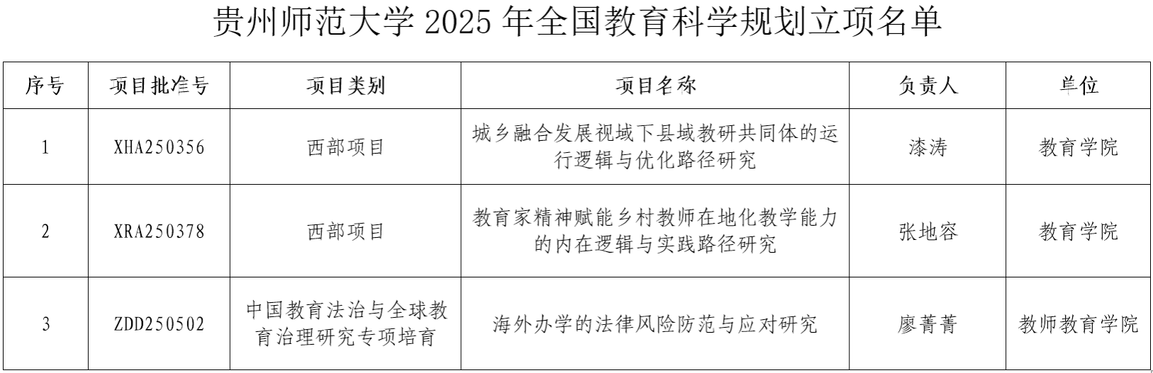 近日,全国教育科学规划领导小组办公室公布了2025年度全国教育科学规划立项名单。我校喜获国家级项目2项、中国教育法治与全球教育治理研究专项培育项目1项。