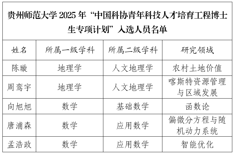 近日,2025年“中国科协青年科技人才培育工程博士生专项计划”入选名单公布,我校5名博士研究生凭借扎实功底与突出潜力成功入选。这不仅是对入选者个人的高度认可,更彰显我校在青年科技人才培养领域的扎实成效与鲜明优势。